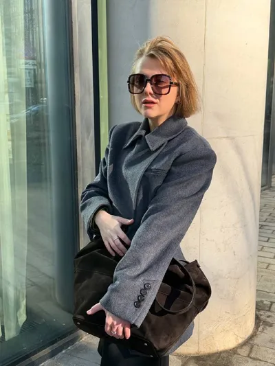 Total look Пальто - пиджак Nume Сумка Afina (из натуральной замшы кстати каждое изделие изготавливается вручную, что гарантирует внимание к деталям и безупречное качество пошива) Сапоги Caprice Очки