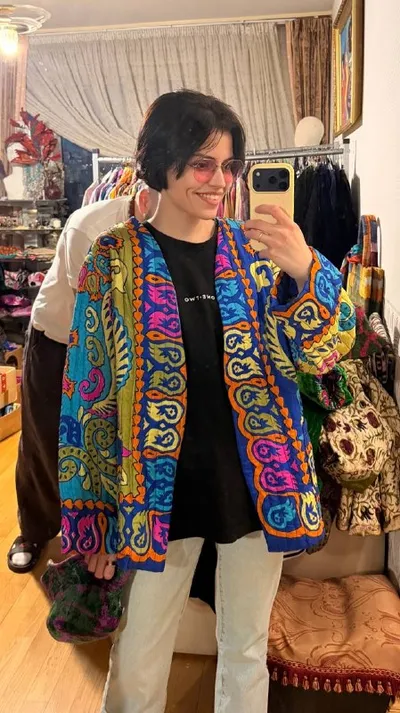 Заезжали на днях к прекрасной Галине, поставщику моего новогоднего бархатного лука, и купили себе весенние двусторонние фуфайки дичайших расцветок. Муж называет этот стиль - ебанина чачача. Свекровь