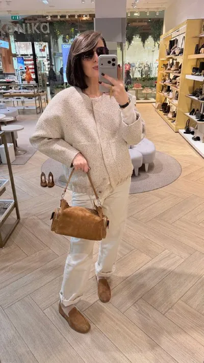 Немного расслабленного вайба выходного дня. Когда хочется мягкости и уюта, но все равно не забываем о стиле Анорак Джинсы Футболка Угги Сумка
