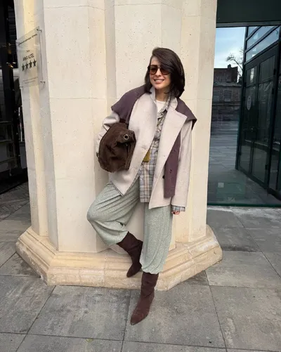 Время любимой многослойности🤎Такие лучки я просто обожать !😍 Пальто, брюки lime Рубашка 2mood Свитер youwanna Ботильоны basarab Очки gresso