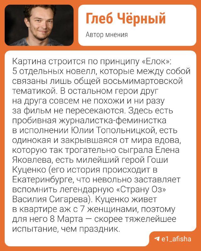 Уже успели посмотреть фильм «Тюльпаны», который вышел накануне Международного женского дня? 👀 — смотрел 👎 — я не смотрел Екатеринбуржец Глеб Черный делится впечатлениями о фильме, рассказывая,