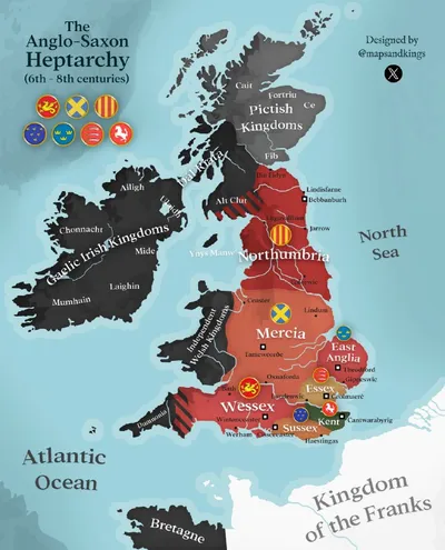 Этимология англосаксонских королевств Нортумбрия (Northumbria) От древнеанглийского Norþanhymbre — "те, кто живут к северу от Хамбера". Состав: norþ "север" + Humber (река Хамбер). Мерсия (Mercia) О