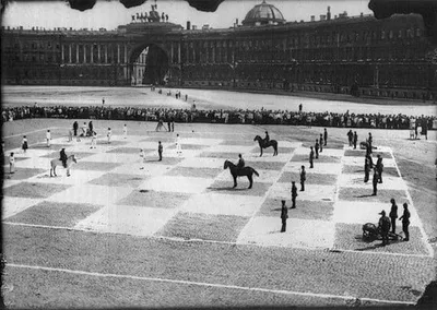 🔥Пётр Романовский и Илья Рабинович разыгрывают живые шахматы на Дворцовой площади Ленинград, 1924 год. 👉Интересное событие произошло 20 июля 1924 года в городе Ленинграде на Дворцовой площади, кот