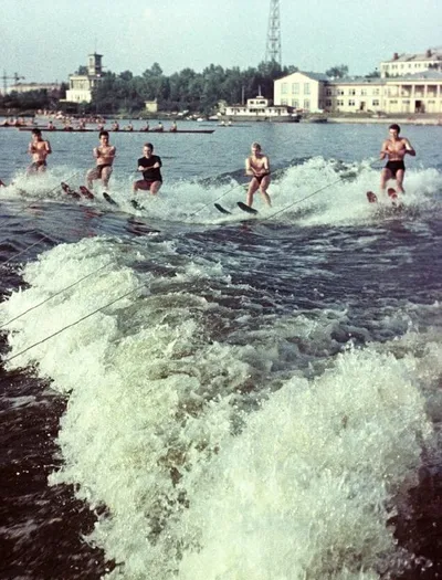 На Химкинском водохранилище — 1963 год. В те годы водные лыжи пользовались огромной популярностью.