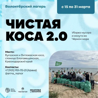 ✅ Волонтерский лагерь «За чистую косу 2.0» Центра Чистой Природы 12-15 🌏 15 по 31 марта 2026 г. 📍 Станица Благовещенская, Анапский район 📌 Центр Чистой Природы 12-15 приглашает волонтеров приня