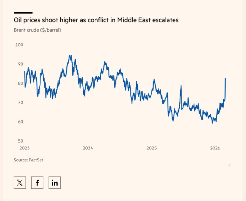 Нефть марки Brent открылась резким ростом на 13%, достигнув отметки $82 за баррель — это максимальный уровень с лета 2024 года. В данный момент котировки скорректировались и находятся около $79 за б