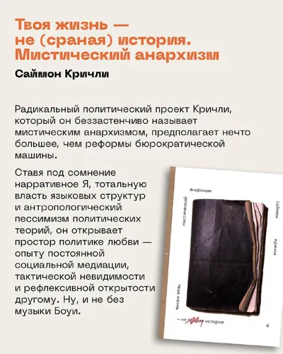 Что такое современный анархизм? С нашей серией небольших сборников актуальных анархистских мыслителей вы легко погрузитесь в этот провокационный и креативный дискурс, найдя вдохновения для своего тв