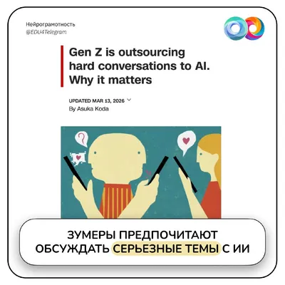 🤖 Поколение Z делегирует сложные разговоры ИИ Исследователи выяснили, что треть «зумеров» предпочитает обсуждать серьезные темы с ботами, а не с людьми. Вот реальная история: студент отправляет де