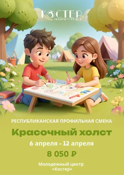 ⚡️⚡️⚡️ Проведи триместровые каникулы в красках и вдохновении! Молодежный центр «Костер» вновь открывает смену «Красочный холст» — место, где идеи превращаются в настоящие шедевры. ✅ Когда: 6-12 а
