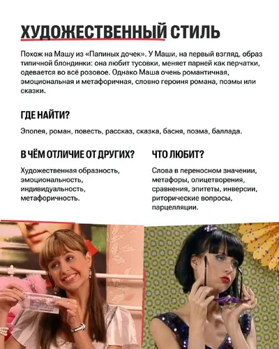 Каждый стиль речи в русском языке уникален и имеет свои яркие черты. Вместе с «Папиными дочками» разберём каждый стиль речи Кстати, вы смотрели этот сериал? ❤️ — знаю такой 🔥 — знаю только новых