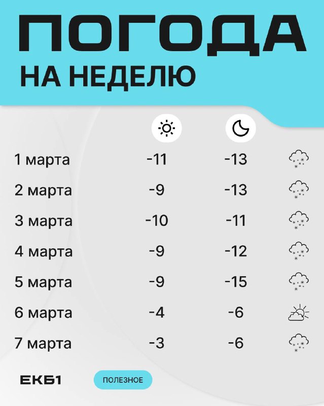 🥶 Побит температурный рекорд 27-летней давности в Екатеринбурге. К 08:00 9 марта на метеостанции зафиксировали –25,1°C, рассказал синоптик Алексей Пулин. В последний раз такая низкая мартовская темп
