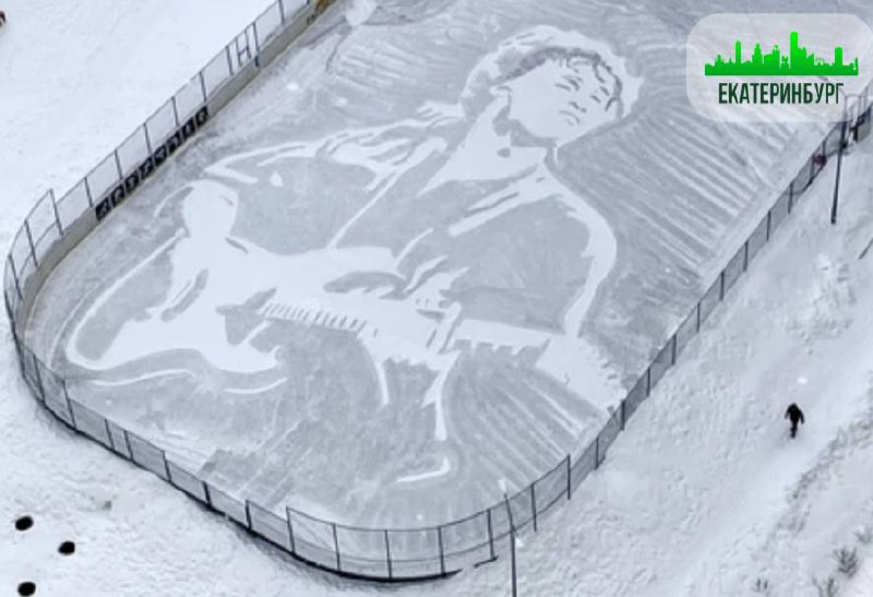 👀 На льду катка в Екатеринбурге художник нарисовал гигантский портрет Виктора Цоя. 👉 Мой Екатеринбург