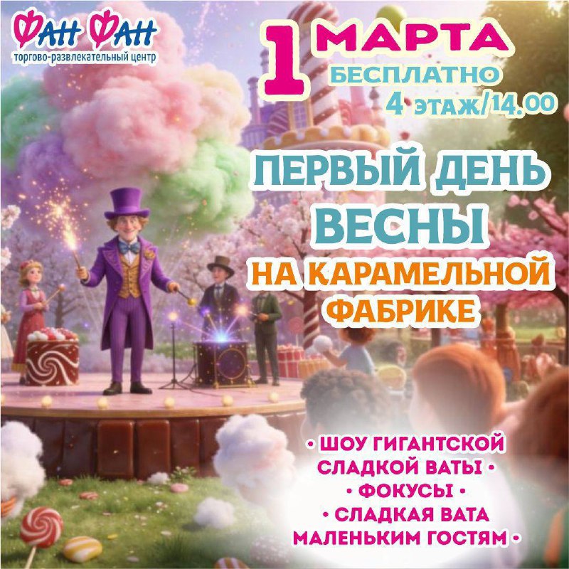 В ТРЦ «Фан Фан» пройдет праздник «Первый день весны на карамельной фабрике» В честь первого дня весны ТРЦ «Фан Фан» (ул. Ясная, 2) приглашает детей на сладкий праздник. Гостей ждут иллюзионное шоу, к