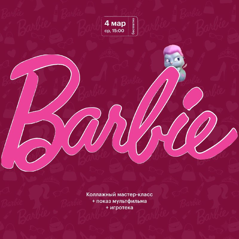 💝 Barbie вечеринка в библиотечном центре Что будет? 🔘15:00 Мастер-класс по коллажам. Создаём коллажи по мотивам вселенной Барби. Все материалы предоставляются. 🔘17:00 Показ мультфильма на анг