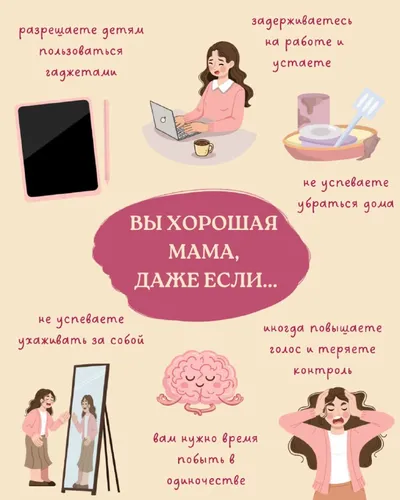 Иногда кажется, что «хорошая мама» всё успевает 👇 Не устаёт. Не срывается. Не ошибается. Но правда в том, что вы — хорошая мама, даже если: 💓 разрешаете детям гаджеты; 💓 задерживаетесь на работе