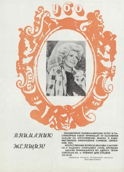«Вниманию женщин!» — весенние преображения от УБО, оно же управление бытового обслуживания, на март 1978 года. «Искусственные волосы красиво смотрятся и надолго сохраняют стиль причёски» *** #Домбыт