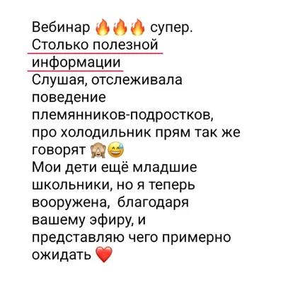 Завершился вебинар «Любовь и раздражение в разные возрастные периоды» Главную задачу, которую я ставила перед собой на вебинар (максимально снизить чувство вины и тревоги у родителей) – я выполнила �