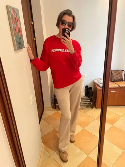Я пошла гулять и есть еду 😜 Красный , говорите , в моде? Их есть у меня! Мне тут в чате напомнили про этот свитшот. Ну и провожающий. Моя трех лапка - самая ласкуша. И бегает за мной, как хвостик. П