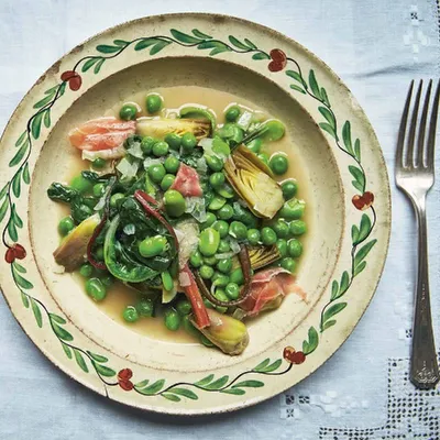 Виньярола — классическое весеннее блюдо римской кухни: лёгкое овощное рагу из молодых сезонных овощей🌿 Вам потребуется: Оливковое масло, 1 небольшая луковица, 2–3 зубчика чеснока, панчетта или бекон