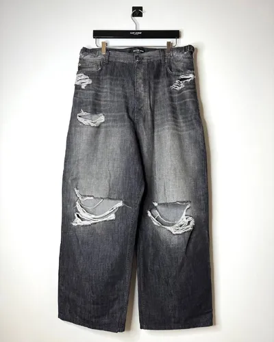 • Balenciaga black washed denim baggy distressed jeans - Made in Italy - Выполнены из плотного денима - Заводские distress-элементы - Металлические регулировочные пряжки на поясе - Металлические пуго