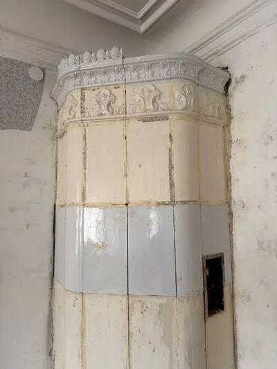 Когда-нибудь мы будем лежать с Викой на кровати и наслаждаться, смотря на эту прекрасную печь, а пока… Начали реставрацию печи! Конечно, за 100+ лет она пережила многое, и в итоге её просто закрасили