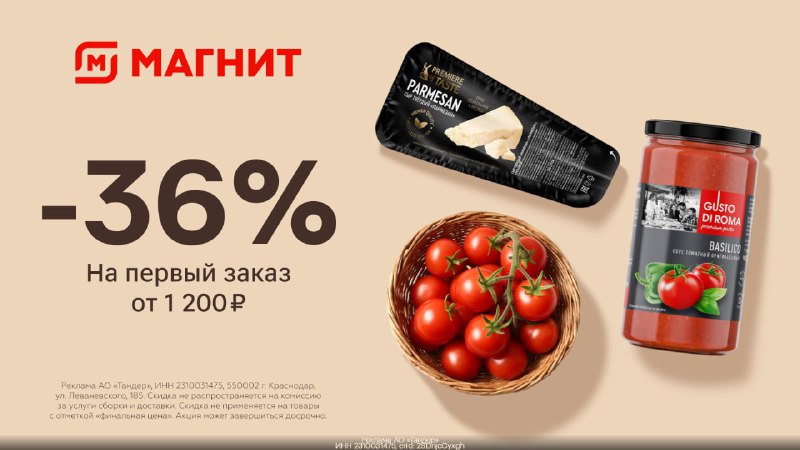 🧀 Скидки до -36% в приложении Магнит: акции и доставка Скачивай по ссылке https://gtblg.ru/wpR9S?erid=2SDnjcCyxgh и делай заказ с применением промокода: Магнит Косметик: GK1OEO2N — скидка 36% на