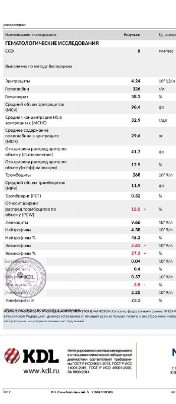 Тема дня напомнила мне совсем недавний случай, менее месяца назад ко мне обратилась 40-летняя женщина. Жалоб особенных не предъявляет, ко мне ее привела эозинофилия до 30% в течение двух лет. Других и