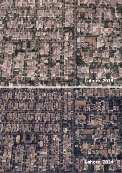 Аэрофотоснимки города Лахор наглядно демонстрируют масштабы внедрения солнечной энергетики в Пакистане По данным Ember, доля электроэнергии, вырабатываемой солнечными батареями, в стране выросла в пя