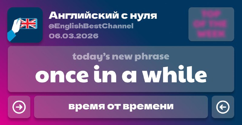 🕰️ Время от времени, иногда Есть вещи, которые мы делаем регулярно, а есть те, что случаются once in a while. То есть не каждый день, но иногда. I like to have a glass of wine once in a while. → Я
