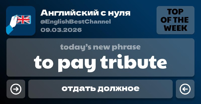 ❓ Pay tribute — где-то видели эту фразу, да? Эта фраза используется в те моменты, когда хочется сказать спасибо, вспомнить с теплотой или почтить чью-то память. Не просто «спасибо», а чтоб с чувством