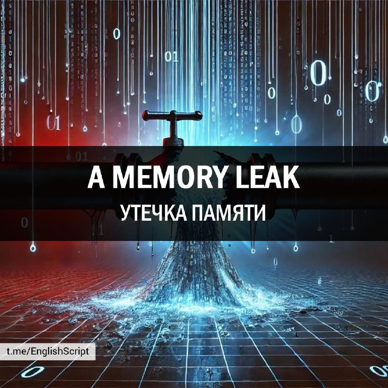 A MEMORY LEAK [ˈmeməri liːk] [мэмори лик] Утечка памяти 🇬🇧 The app has a memory leak — it grows over time. 🇷🇺 У приложения утечка памяти — она растет со временем.