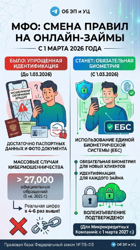 С 1 марта 2026 года микрофинансовые организации (МФО) не смогут выдавать потребительские займы по так называемой "упрощённой идентификации". Теперь при дистанционной выдаче займов для идентификации кл