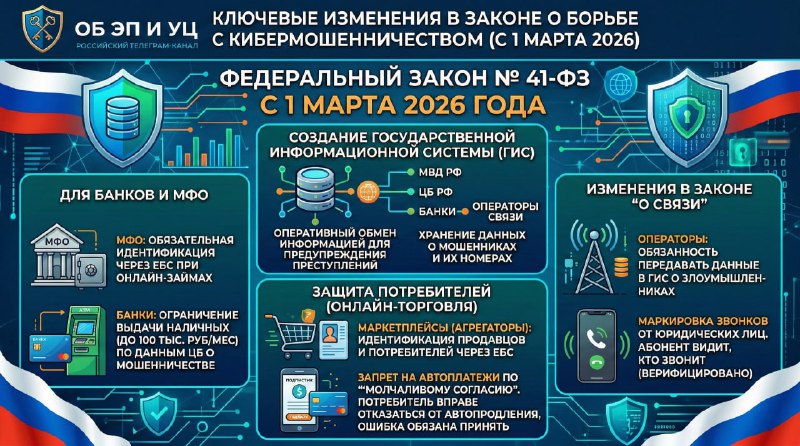 С 1 марта 2026 года вступают в силу ключевые нормы Федерального закона № 41-ФЗ, направленные на создание государственной информационной системы для борьбы с кибермошенничеством, а также поправки в сме