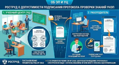 Ответ Роструда на вопрос о правомерности подписания протокола проверки знаний УНЭП На портале Онлайн инспекции размещен ответ на данный вопрос - Сотрудник проходит обучение по охране труда в учебном