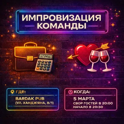 🎭 ИМПРОВИЗАЦИЯ КОМАНДЫ | 5 марта Две команды комиков выходят на сцену, чтобы забрать главный приз и аплодисменты. Любимчики зала и новые лица, много азарта и ни одной заготовки. Всё рождается прямо