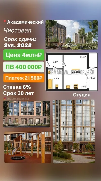 ПВ 10%🔥 Квартиры от 4 млн₽ Расчеты по Семейной ипотеке. Локация: Академический, ул. Ак. Ландау. Срок сдачи: 2кв. 2028. Отделка: чистовая. Преимущества объекта: ✅детская и спортивная площадки; ✅к