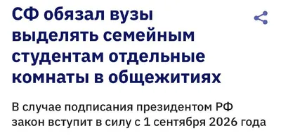 Семейным студентам будут выделять отдельные комнаты в общежитиях. В России готовится закон, который обяжет вузы предоставлять студентам, состоящим в браке, отдельные комнаты в своих общежитиях. Моло