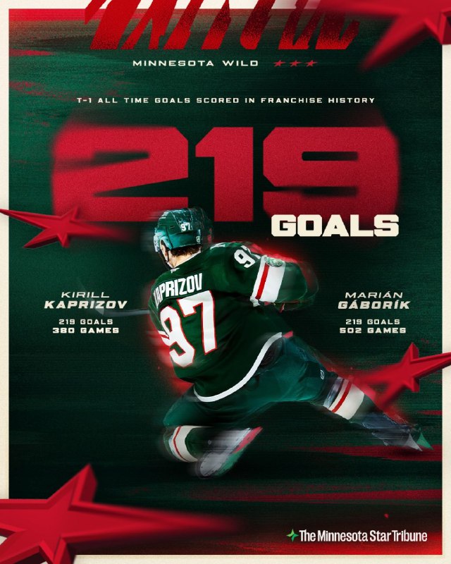 Кирилл Капризов догнал Мариана Габорика по голам в истории «Миннесоты». Причём потребовалось ему на это куда меньше игр, чем словаку. Ещё одна шайба, и он — лучший снайпер. Но это в регулярных чемпион