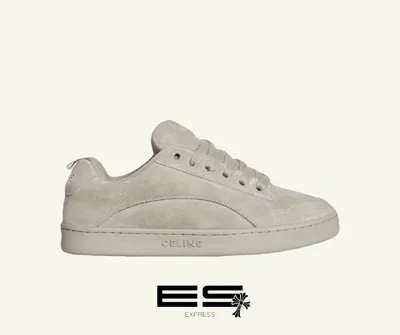 🤍Celine Homme Low Lace-Up Sneaker in Suede ⏺ Кеды из мягкой бежевой замши с чистым силуэтом, тонкой шнуровкой и тиснённым логотипом на подошве, которые выглядят очень элегантно и универсально. Дос