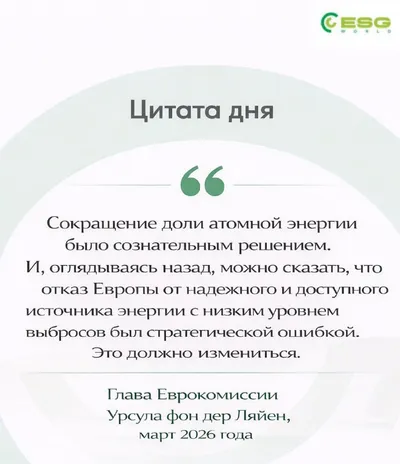 #Дайджест интересных ESG-новостей за неделю 📰 "Отказаться от атома было стратегической ошибкой": Урсула фон дер Ляйен фактически переписала энергетическую стратегию ЕС, заявив о возвращении атомной