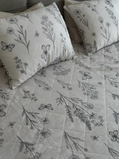🤍Этот комплект из покрывала и наволочек я взяла еще зимой, но тогда он не особо подходил) На днях одела его и теперь прохожу и каждый раз любуюсь😍 📎 ссылка ~ 3.011 руб. 🧡- если понравилось Смо
