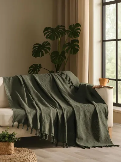 🤍Натуральные ткани в интерьере всегда смотрятся хорошо 😟 Нашла такой потрясающий турецкий плед. Очень нравится его жаккардовая фактура и эти милые кисточки в стиле бохо ✨ 📎ссылка ~ 2.426 руб. Со