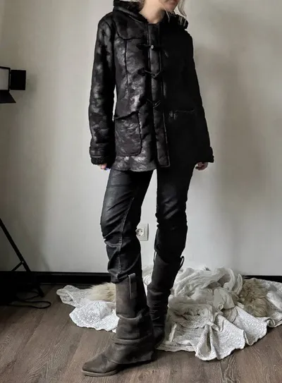 ꧂ textured fur coat текстурная дубленка на молнии и застежках колышках с широким капюшоном прямой крой, внутри тонкая меховая подкладка, на высокий рост будет укороченной материал, если смотреть вбли