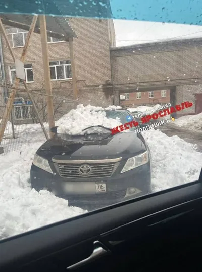 Снежная глыба рухнула на машину с ребенком в Карачихе В Карачихе с крыши дома сошла снежная масса. Она рухнула на припаркованное авто с полугодовалым ребенком. Удар пришелся на переднюю часть авто.