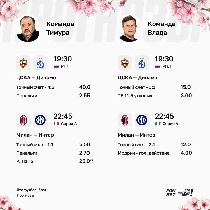 🦛🤪 Тимур и Влад тут собрали праздничный букет прогнозов. Всех дам еще раз с праздником💐 Друзья из FONBET раздают до 15к фрибетом по промокоду BRO. Залетай! ❤️