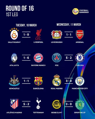 Результаты всех первых поединков 1/8 финала Лиги Чемпионов. Ответные матчи пройдут 17 и 18 марта и именно тогда мы узнаем всех четвертьфиналистов турнира! ⚽️ Подпишись на Евро-футбол в MAX