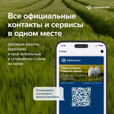 Быть на связи с ЕвроХим стало еще удобнее! 📲 ✔️ Мы собрали официальные контакты нашей компании, новости, а также ссылки на ресурсы и сервисы в удобной цифровой визитке. Больше не нужно ничего иска