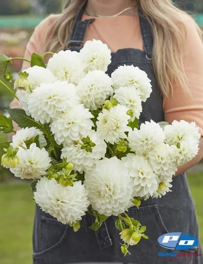 Знакомьтесь, фаворит флористов и королева букетов — георгина Boom Boom White🤍 Этот сорт невозможно не полюбить с первого взгляда.😍 Его идеальные шаровидные соцветия напоминают изящные помпоны. Предс
