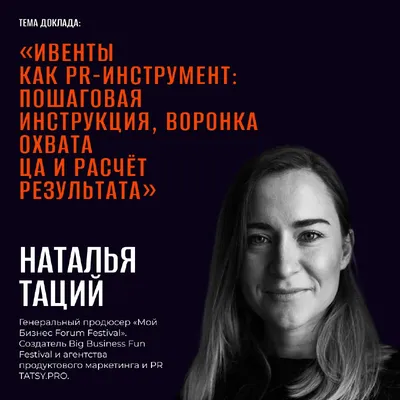 Наш следующий дуэт выступит с темой «Ивенты как PR-инструмент: пошаговая инструкция, воронка охвата ЦА и расчёт результата». Приходите послушать доклад и узнайте, как делать PR-ивенты 🔥 Наталья Таци