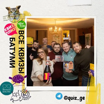 💡@quiz_ge - канал со всеми квизами и интеллектуальными играми Батуми: Что? Где? Когда?, Ньютон, Квиз Плиз, Шейкер, Мозгобойня, ГПОГ, 60 секунд... ⭐️А также настолки, квесты, Мафия и многое другое..